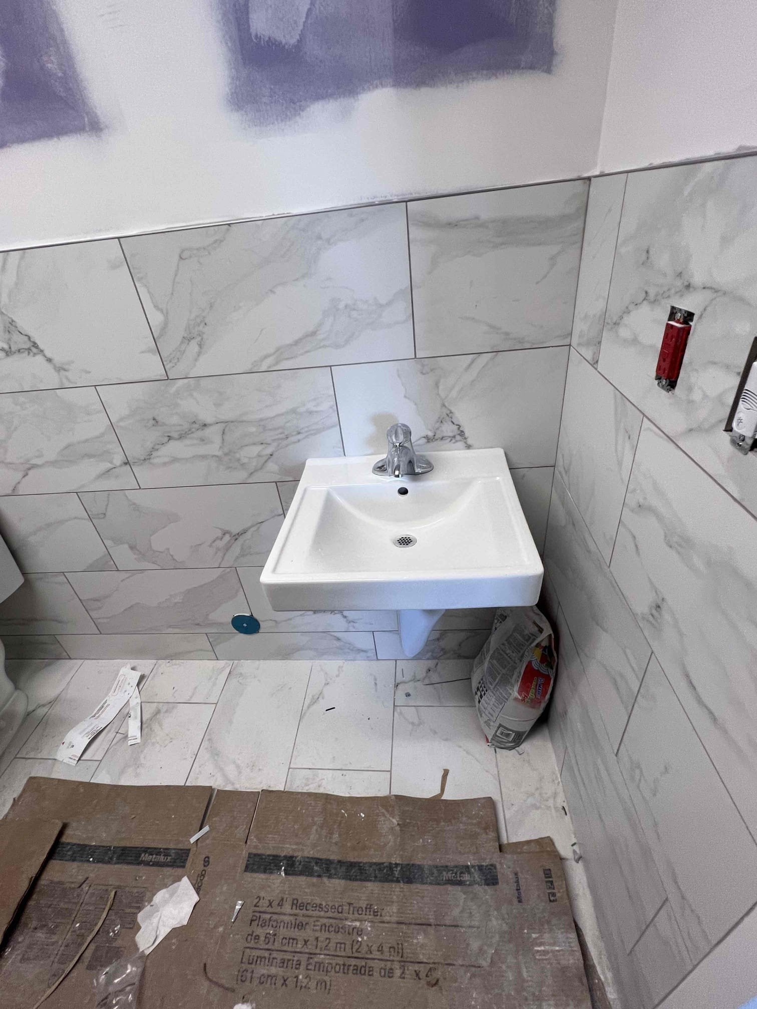 Our team installed all-new plumbing to tie into the existing sanitary and vent lines, verified onsite for accuracy and code compliance. The bathroom areas included: